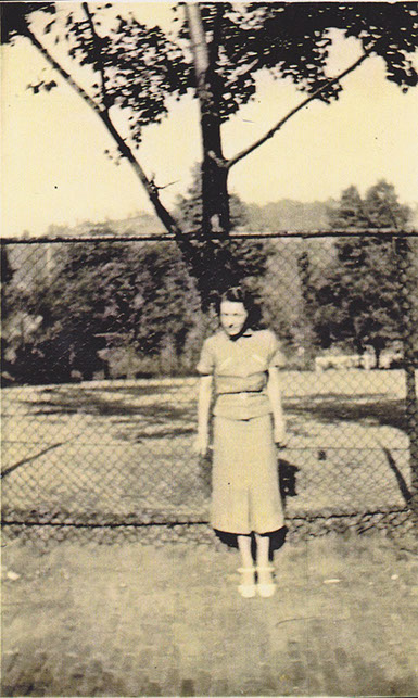 Jeanne in front of the Elks Playground, nest to Bud's parents' home in Wheeling